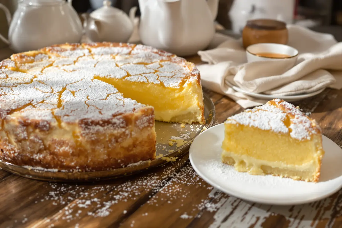 Ce gâteau italien appelé Torta della Nonna ripiena (gâteau de grand-mère fourré) est un vrai trésor de la cuisine traditionnelle. Sous une croûte légèrement dorée, il renferme une crème pâtissière parfumée au citron. Dès que vous le coupez, la crème s’échappe doucement, donnant à ce gâteau une dimension fondante et gourmande.